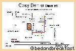 * through the Estate security boom, over the speed humps and turn right into Elizabeth Rd, down to the T-junction and turn right, the entrance is immediately on your left. Number 18 Dina Rd, Big white walls, green gate with a framed ceramic Cosy Den B&B sign.
